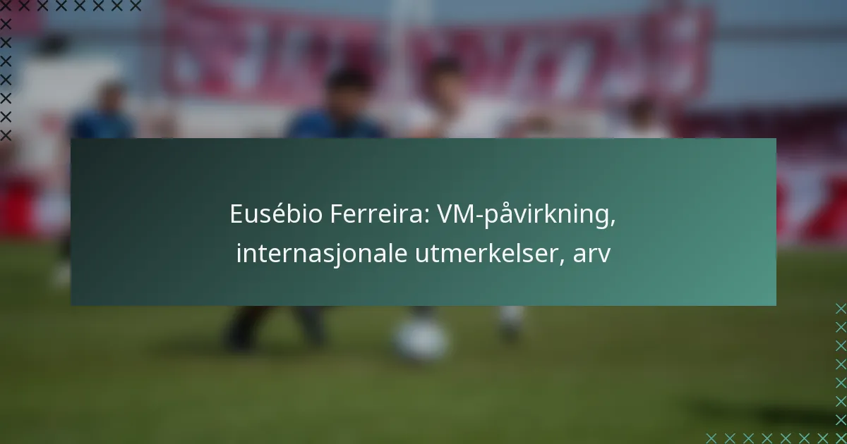 Eusébio Ferreira, en legendarisk skikkelse i fotball, mottok mange internasjonale utmerkelser gjennom sin karriere, spesielt for sine prestasjoner i FIFA VM og andre prestisjefylte turneringer. Hans bidrag hevet ikke bare hans nasjonale lag, men etterlot også en varig innvirkning på sporten globalt.